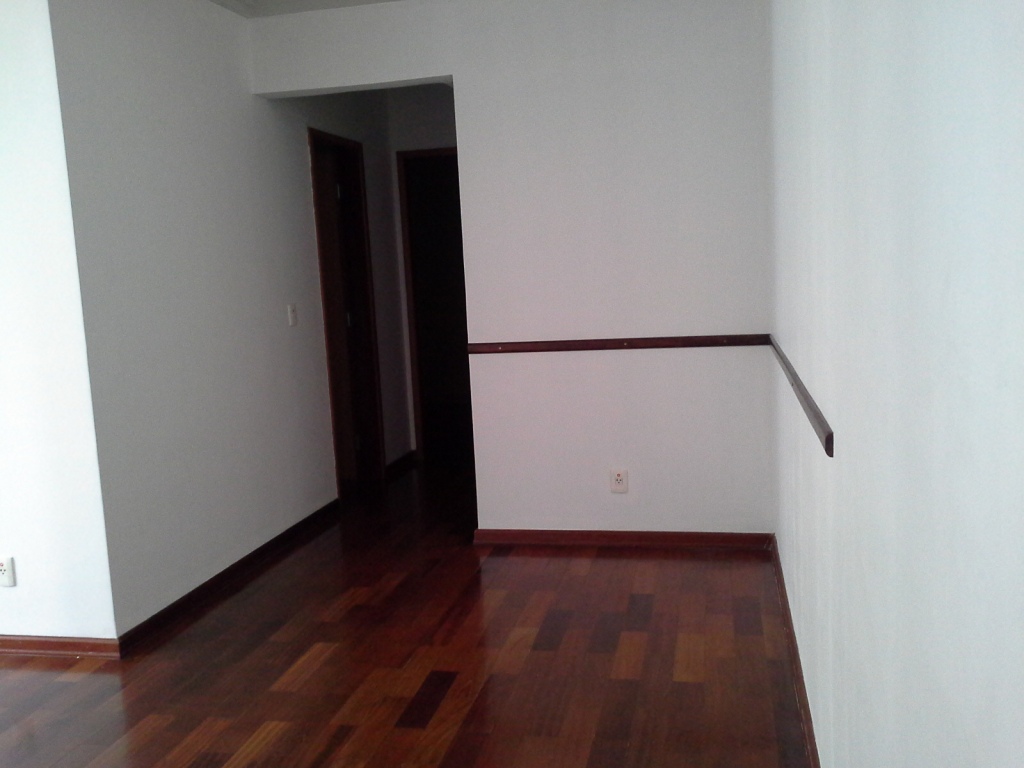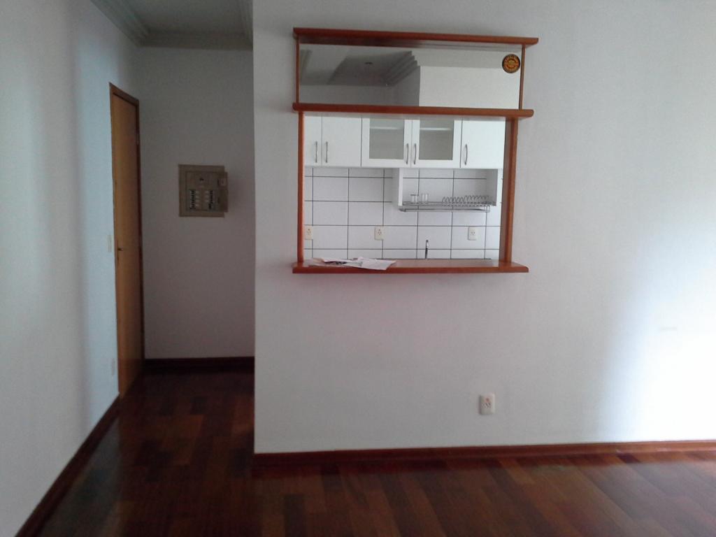 Apartamento 64 m², 2 dormitórios sendo 1 suíte repleta de armários, cozinha planejada, área de serviço, sala para 2 ambientes, trabalho de gesso e iluminação no teto, piso de madeira, banheiros com gabinete, box e espelho.